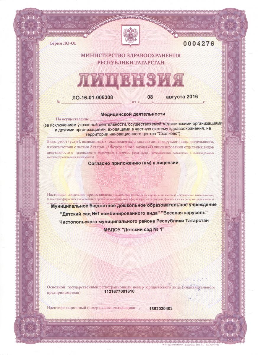 МБДОУ "Детский сад № 1 комбинированного вида "Веселая карусель" государственную аккредитацию не имеет, так как был открыт 12.12.2013 года.