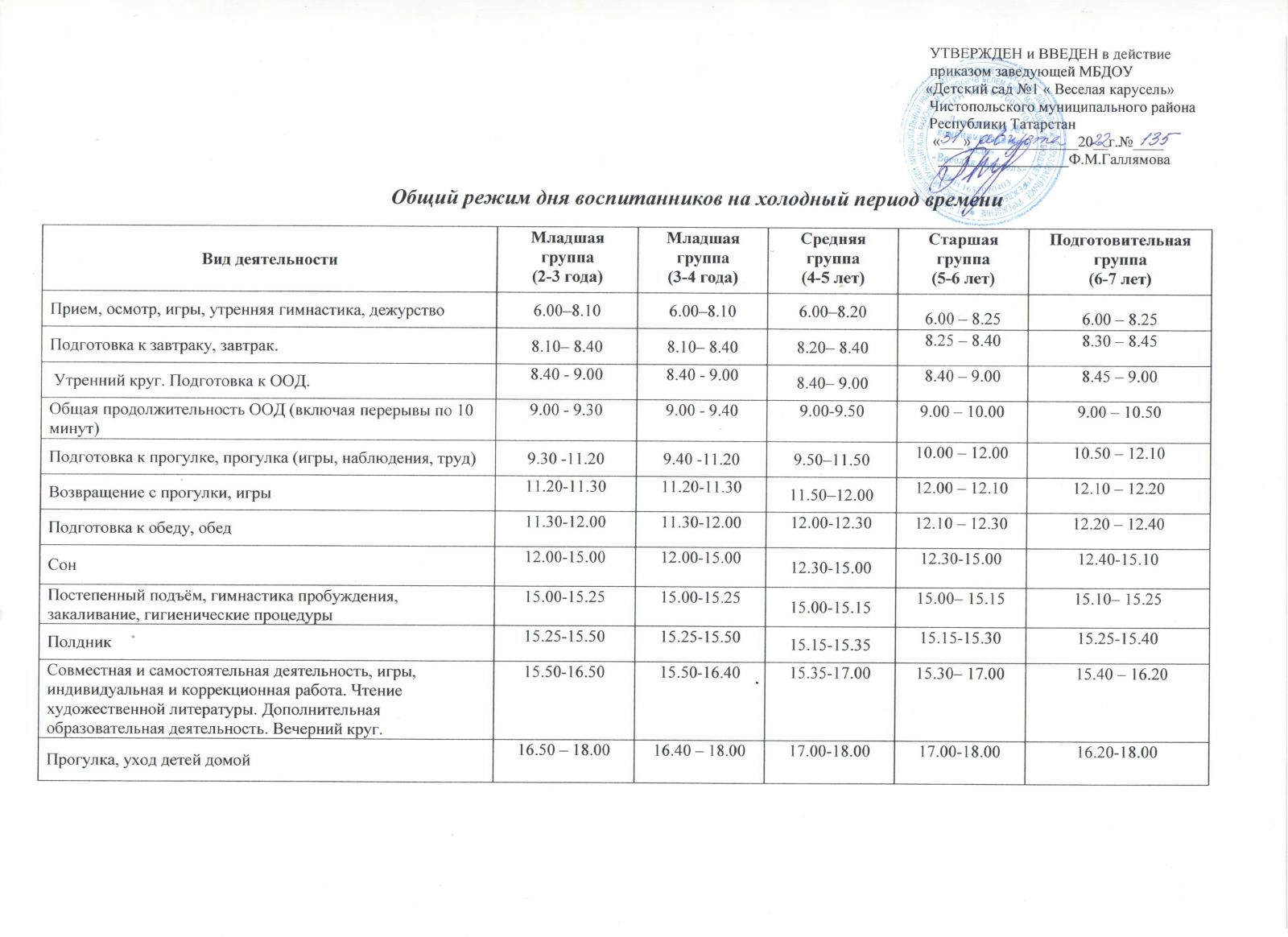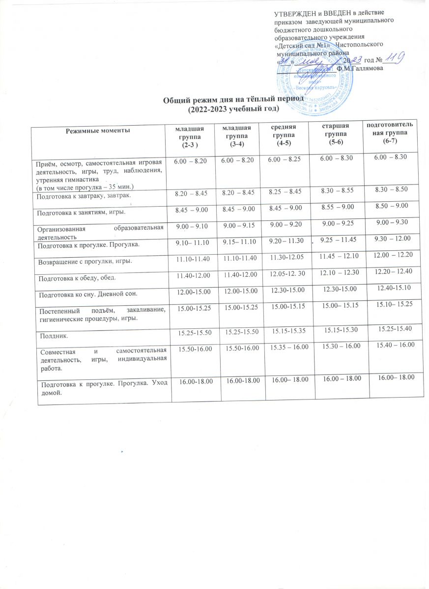 Общий режим дня на теплый период на 2022-2023 учебный год
