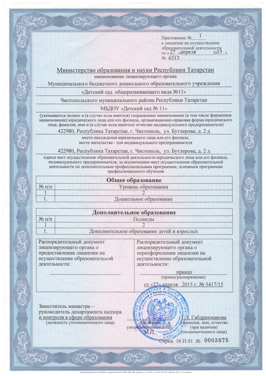 Приложение к лицензии на образовательную деятельность и платные образовательные услуги