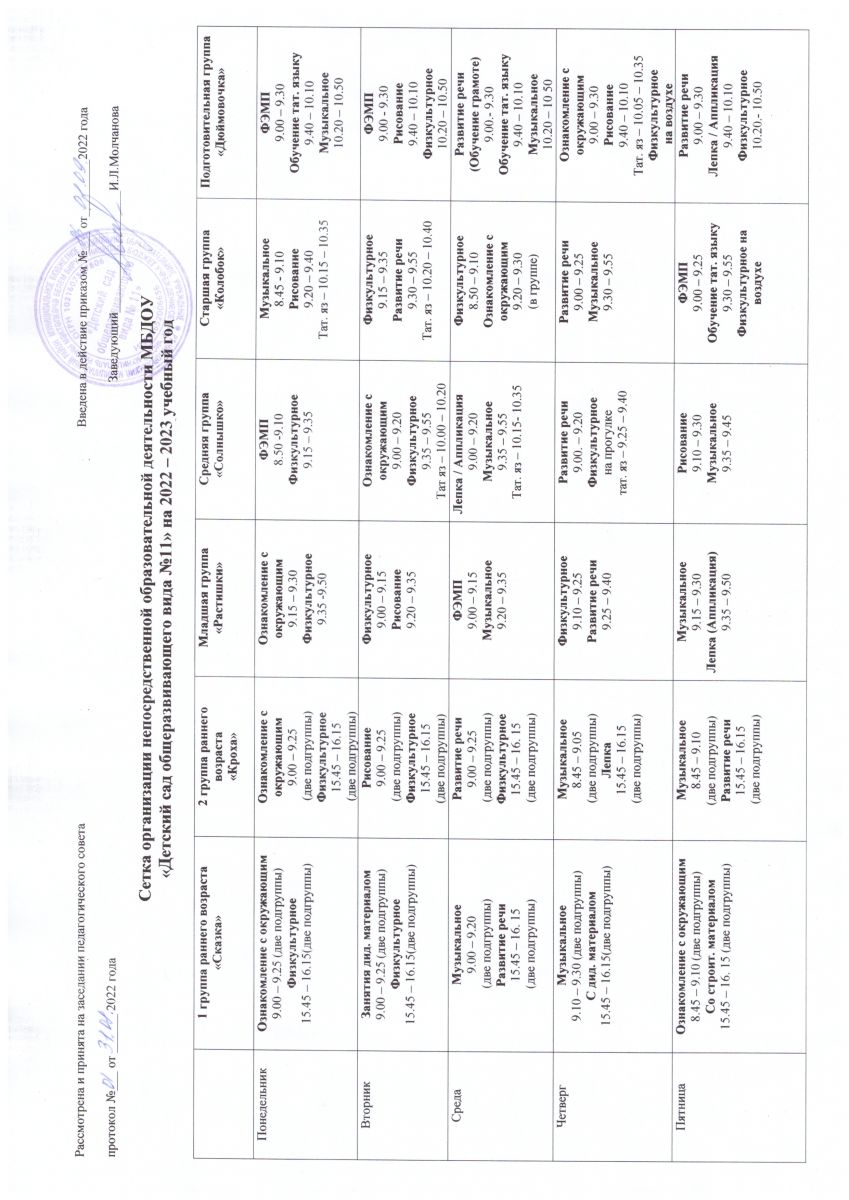 - Сетка НОД 2022-2023 учебный год