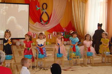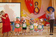 Нәниләр төркемендә Халыкара Хатын -кызлар көненә багышланган кичәдә, нәниләр әниләрен һәм әбиләрен җырлар, биюләр белән шатландырдылар.