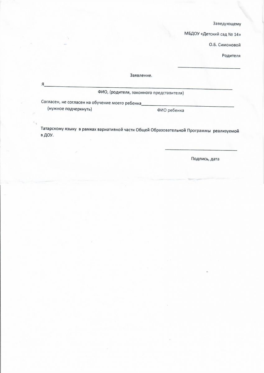 - копия заявление (согласие) на обучение татарскому языку