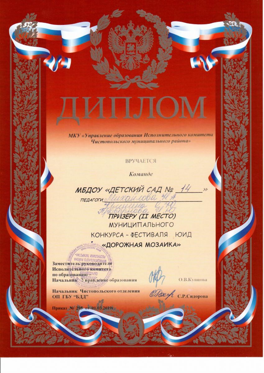 Результат участия в ежегодном муниципальном конкурсе-фестивале "Дорожная мозаика"/ Диплом, 2 место