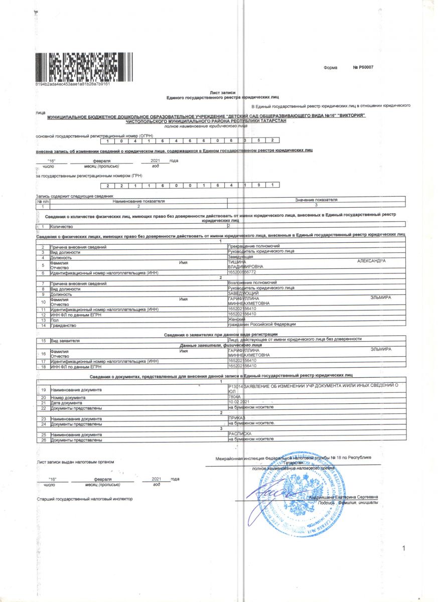 Муниципальное бюджетное дошкольное образовательное учреждение «Детский сад общеразвивающего вида №16" «Виктория» Чистопольского муниципального района Республики Татарстан