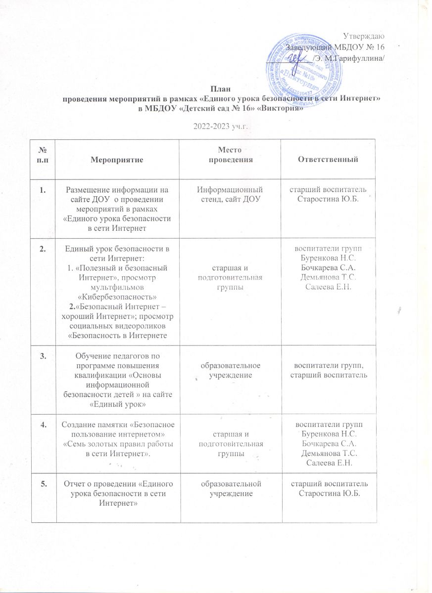 План проведения мероприятий в рамках "Единого урока безопасности в сети Интернет"