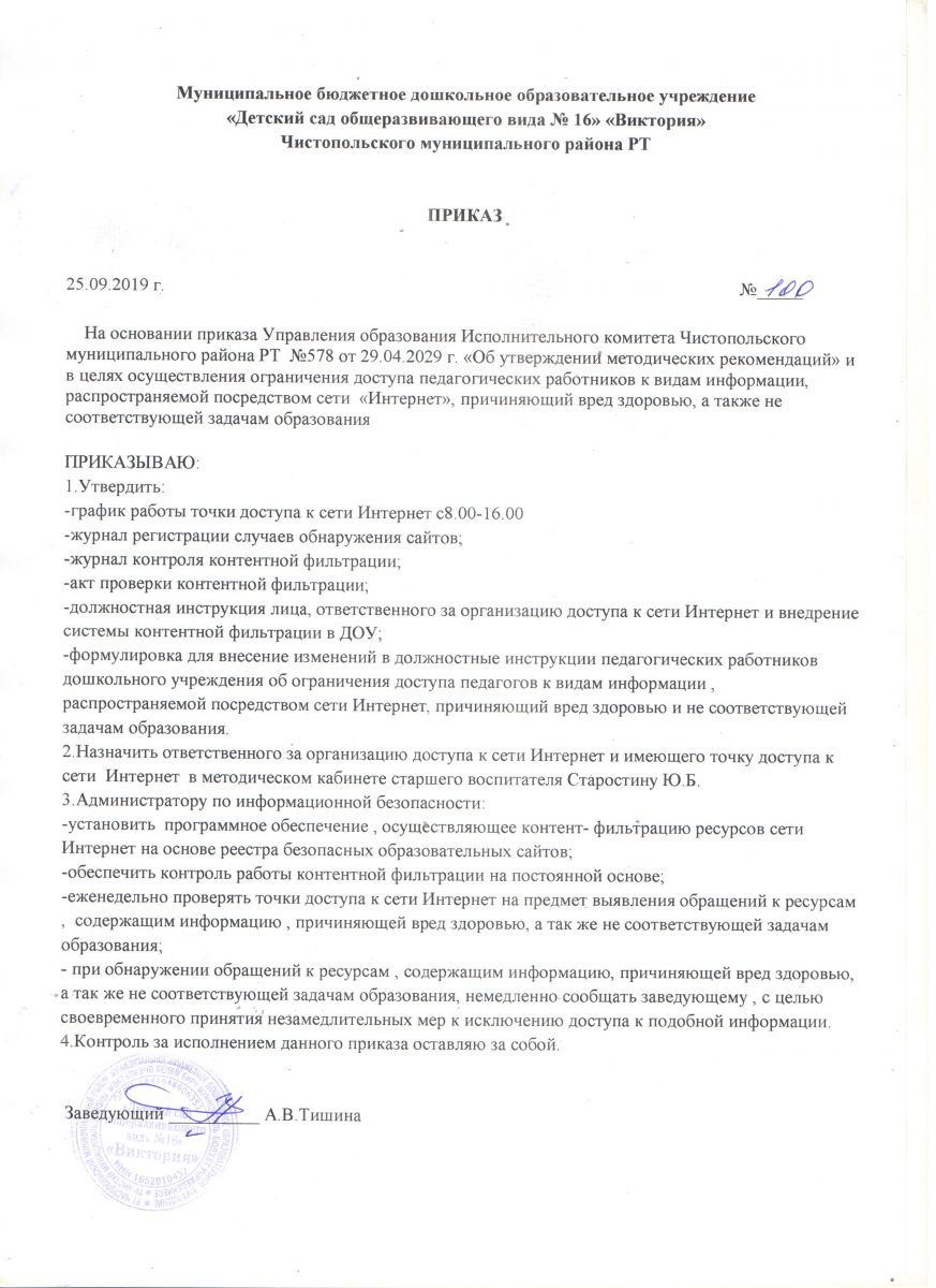 Приказ ДОУ "Об организации информационной безопасности в образовательной организации"