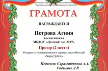 Воспитанница подготовительной группы Петрова Агния стала призером этого конкурса!