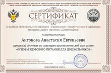 Сертификаты по основам здорового питания 15.10.2020