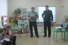 в детском саду прошла встреча с сотрудниками госинспекции биологических ресурсов. Гости рассказали много интересного про пернатых, провели викторину и падарили скворечник который вместе с детьми установили.