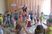 прошел в детском саду в рамках реализации летне-оздоровительной работы с целью развития у детей эстетического воспитания. На праздник пришли Королева Бантиков и Король Резинок. Дети демонтрировали бантики и веселые шляпки, соревновались в мастерстве завязывать банты, танцевали и пели песни с поздравлением именнинников июня-июля.