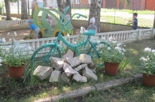 Петунии и старый велосипед украсили территорию детского сада 09.07.2018