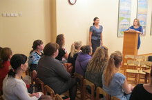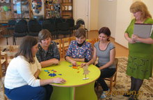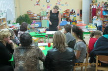 Ястребова Л.Р. показывает технологию работы для воспитателй детских садов №25 и №10 в рамках обучения детей играми Воскобовича