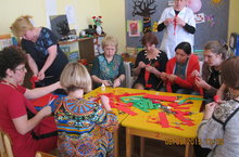 В рамках празднования 70-летнего юбилея Победы педагоги на мастер- классе изготовили своими руками георгивские ленточки с гвоздикой.