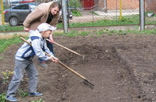 В рамках организации двухмесячника по уборке территории, в детском саду продолжается посадка огорода. Педагоги воспитывают у детей трудовые навыки, любовь к природе