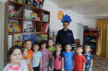 С целью повышения знаний правил дорожного движения и предотвращения травматизма детей на дорогах, была проведена беседа с детьми инспектором ГИБДД Воляковым В.В. Воспитанники ответили на вопросы инспектора и получили много полезных знаний.