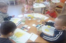 Сегодня ребята учились рисовать цветок - Одуванчик. Они закрепляли знания о частях одуванчика (стебель, листья, цветок). Так же отрабатывали умение правильно держать кисточку и набирать краску. Получились вот такие солнечные одуванчики!
