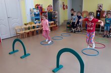 Физическая культура на воздухе, старшая и подготовительная группы. Дети развивают ловкость, целеустремлённость, глазомер, воспитывают любовь к спорту через игру.
