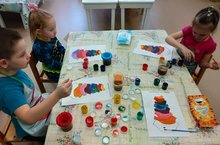 Кружок "Цветик-Семицветик" в средней группе. Дети на кружке учатся делать фон с помощью кисти № 20 и гуаши разных цветов. Разукрашивать предметы кончиком кисти, добавлять элементы по своему желанию. Закрепляют оттенки основных цветов и становятся "волшебниками" при создании одного цвета из двух, например: оранжевый, розовый и т.д.