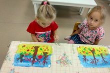 В начале года в детском саду начали работать четыре кружка: "Речецветик" (логопедический), "Говорим по английски" (обучение английскому языку), "АБВГДейка" (обучение чтению) и изостудия "Цветик-Семицветик", с использованием авторской техники Светланы Викторовны Погодиной. Дети с большим удовольствием рисуют осень, используя ватные палочки, малярные кисти, влажные салфетки... У них получаются замечательные работы!