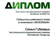 Поздравляем семью Губеевых, ставших победителями районного этапа ежегодного республиканского конкурса "Эковесна" за 2022 год. От министерства экологии семья получили в подарок диплом и ультразвуковой увлажнитель воздуха! Молодцы!!! Желаем новых побед!