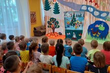 В понедельник в детском саду ребята посмотрели спектакль Набережно-Челнинского театра "Синичкин календарь". Дети с большим интересом наблюдали за животными на сцене, вместе с синичками закрепили признаки времен года - остались очень довольны спектаклем!