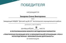 НАШ ДЕТСКИЙ САД ПРИНЯЛ УЧАСТИЕ В РЕСПУБЛИКАНСКОМ КОНКУРСЕ МЕТОДИЧЕСКИХ РАЗРАБОТОК «ПРАКТИЧЕСКАЯ РЕАЛИЗАЦИЯ ФГОС В ОБРАЗОВАТЕЛЬНОЙ ОРГАНИЗАЦИИ: УРОК И НЕПОСРЕДСТВЕННАЯ ОБРАЗОВАТЕЛЬНАЯ ДЕЯТЕЛЬНОСТЬ» В НМИНАЦИИ "ДОШКОЛЬНОЕ ОБРАЗОВАНИЕ", ЗАНЯВ ПОЧЕТНОЕ ВТОРОЕ МЕСТО!