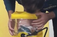 Родители с детьми устанавливают таблички
