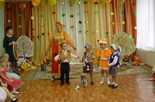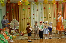 Воспитанники старшей группы в начале утренника исполнили красивую танцевальную композицию с листочками, читали стихи на русском и татарском языках, пели песни об осени. В гости к детям пришли сердитая Тучка и ласковое Солнышко, они устроили спор кто из них важнее, но ребята и их воспитатели Юсупова Резеда Рашитовна и Аверьянова Анна Александровна помогли им подружиться и в веселом танце закружиться. Красавица Осень приготовила на праздник сказку о лесных друзьях, вместе с которыми все собирали урожай грибов и наблюдали за танцем рябинок , играли с листочками. В конце Осень подарила детям интересную игру «Волшебный платок». Все присутствующие на празднике получили массу положительных эмоций!