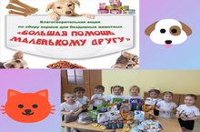 В нашем детском саду прошла благотворительная акция по сбору корма для животных «Большая помощь маленькому другу». Акция направленна на решение одной из актуальных и злободневных проблем нашего времени – помощь бездомным животным. Для приюта эта помощь жизненно необходима. К большой радости на призыв о помощи откликнулось большое количество неравнодушных семей. Малыши и их родители на протяжении нескольких дней собирали для собак и кошек все необходимое. Сотрудники приюта выражают благодарность всем неравнодушным семьям за то, что подали руку помощи, за доброту и отзывчивость. Спасибо за то, что дети видят пример доброты, благородства и любви к животным./Безнең балалар бакчасында «Кечкенә дуска зур ярдәм» дигән терлек азыгы җыю буенча хәйрия акциясе узды.. Акция - безнең заманның актуаль һәм көнүзәк проблемаларының берсе - йортсыз хайваннарга ярдәм итүгә юнәлтелгән. Приют өчен бу ярдәм бик мөһим. Ярдәм турында чакыруларга зур шатлыкка битараф булмаган гаиләләр җавап бирде. Балаларны һәм аларның әти-әниләре берничә көн дәвамында эт һәм мәчеләр өчен барлык кирәкле әйберләрне җыйганнар. Приют хезмәткәрләре барлык битараф булмаган гаиләләргә ярдәм кулы сузулары, яхшылык һәм ярдәмчеллек өчен рәхмәт белдерәләр. Балалар хайваннарга карата игелеклелек, намуслылык һәм мәхәббәт үрнәген күргәннәре өчен рәхмәт.