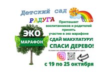 С 19 по 25 октября 2021 года в рамках Эко-марафона «Сдай бумагу – Спаси дерево!» в детском саду прошла акция по сбору макулатуры.