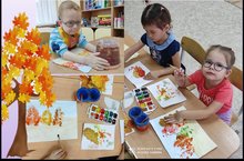 Дети группы Светлячок отправились в путешествие в осенний лес, в котором много чудес. Дети нарисовали осенние деревья путём нетрадиционной техники рисования. Изготовили осенний сувенир, оставив от осени приятные воспоминания./ Светлячок төркеме балалары көзге урманга сәяхәткә киттеләр, ул урман могҗизаларга бай. Балалар традицион булмаган рәсем ясау техникасы ярдәмендә көзге агачларны ясадылар. Көздән күңелле истәлекләр калдырып, көзге сувенир ясадылар.