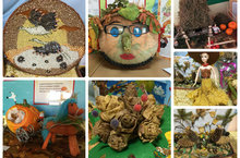 Традиционно в нашем саду прошла выставка поделок из природного материала на тему "Осенние фантазии"./Гадәттәгечә безнең бакчада "Көзге фантазияләр" темасына табигый материалдан ясалган кул хезмәте күргәзмәсе үткәрелде.