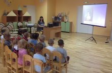 С целью приобщения детей к богатствам русской художественной литературы, посвящённое 218 -й годовщине со дня рождения русского поэта А.С.Пушкина, для детей группы "Витаминки" музыкальный руковолитель Бататлова И.С. провела творческое занятие./ Балаларны, рус нәфис әдәбияты белән таныштыру максатыннан һәм бөек рус шагыйре А.С.Пушкинның 218 еллыгына багышлап музыкаль җитәкче Батталова И.С. "Витаминки" төркеме балалары өчен иҗади дәрес үткәрде.