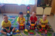 С целью ознакомления детей с элементарными правилами дорожного движения, закрепения знаний о значении светофора, правил регулирования движения транспорта в группе "Крохи" прошло занятие./ Балаларны юл кагыйдәләре белән, светофорның әһәмияте турында белемнәрне ныгыту максатыннан "Крохи" төркемендә дәрес узды.