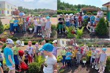 Посадка туи выпускниками в память о времени проведенном в детском саду - замечательная традиция, которая поддерживается уже на протяжении 8-ми лет. Аллея выпускников пополняется новыми деревцами каждый год. В этом году свой вклад сделали группы "Паровозики", "Кораблики" и "Светлячок". Большое спасибо им за маленький вклад в большое дело и за поддержание традиций в нашем детском саду!/ Чыгарылыш сыйныф укучылары тарафыннан балалар бакчасында үткәргән вакыт истәлегенә туя утырту искиткеч традиция, ул инде 8 ел дәвамында саклана. Чыгарылыш сыйныф укучылары аллеясы ел саен яңа агачлар белән тулылана. Быел "Паровозики", "Кораблики" һәм "Светлячок"төркемнәре үз өлешләрен кертте. Аларга зур эшкә кечкенә өлеш керткәннәре һәм безнең балалар бакчасында традицияләрне саклаганнары өчен зур рәхмәт!