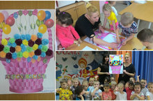 В группе "Витаминки", работала творческая мастерская, по изготовлению коллективной работы, подарок для детского сада, "Корзина с цветами".