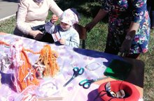 Сегодня в парке состоялся городской праздник, посвященный Дню защиты детей. Где наши педагоги Качуровская О.А. и Михеева М.В. приняли активное участие организовав мастер-класс ниточное плетение: "Веселые человечки"./ Бүген, Скарятин паркында Балаларны яклау көненэ багышланган бәйрәм булып узды! Анда, безнең педагоглар Качуровская О.А. һәм Михеева М.В. еп белән бәйләү "Күңелле кешеләр" темасына мастер-класс оештырдылар.