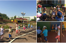 В рамках летне-оздоровительной программы сегодня, воспитатели группы "Паравозик" провели физкультурное развлечение приуроченное ко дню Росии./ Җәйге сәламәтләндерү программасы кысаларында бүген, "Паравозик" төркеме тәрбиячеләре Россия көненә багышланган күңел ачу физкультура уеннары уздырдылар.