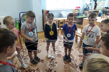 В рамках организации физкультурно-оздоровительной работы, с целью развития быстроты и ловкости, в группе "Семицветики" были организованы "Веселые старты"."Семицветик" балалар төркемендә физкультура сәламәтләндерү эшен оештыру кысаларында, тизлекне һәм җитезлекне үстерү максаты белән, "Күңелле старт"лар - дигән чара оештырылды.