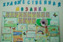 В нашем саду работает выствка "Художественная Мозаика", сегодня на выставке представлены детские рисунки на тему "Здравствуй, лето"