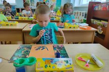 «Әкият» төркемендә сәнгать - эстетик үсеш буенча кызыклы дәрес узды. Дәрес темасы "Яңгыр ява". Максат: «пластилинография» техникасында эшләү ысулларын беркетү: декоратив элементларны әйләндерү, тигезләү, башкару; балаларны тема һәм дизайн буенча сурәтләү өчен объектларга кертергә өндәү.