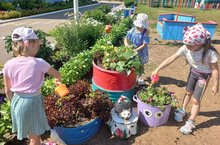 "Знайки" төркемендә "Төрле төстәге чәчәкләр дөньясы" - дигән максатчан йөреш үткәрелде. "Знайки" төркеме участогында экологик үзәкләр: "Альп таулары", "Күңелле күршеләр", бакча фигуралы клумблары белән чәчәк ата.