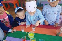 Сегодня воспитанники группы «Радуга» превратились в волшебников и с обычной водой делали различные превращения. Малыши сделали множество открытий. Оказалось, что вода имеет свойство менять свой цвет, запах, вкус. А ещё - водой можно рисовать, например, с помощью мыльных пузырей!
