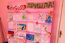 В детском саду уже чувствуется приближение весны - это благодаря оформленной выставке совместного творчества детей и родителей - рисунков "Весна пришла". Каждый рисунок по своему оригинален, красив и передаёт весеннее настроение
