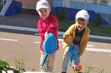 Воспитанники очень рады приходу солнечного лета, но и трудится не забывают. Малыши с удовольствием ухаживают за посаженными растениями на территории детского сада