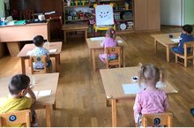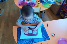 "Гномики" төркемендә рәсем ясау буенча дәрес узды. Балалар штамп ярдәмендә рәсем ясарга өйрәнделәр. Балалар рәсем ясаганда кагазь битләренә ориентлашырга, белемнәрен төс һәм формалар белән аерырга өйрәнәләр.