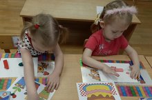 "Колобок" төркеме балалары "Әбигә песи табарга булышыйк" - дигән, өч өлештән торган аппликация ясадылар. Сюжетны карагач, алар хайваннарның хәрәкәтләрен күзәттеләр. Үзләре мәче ролендә булып, кәтүкләр белән уйнадылар.