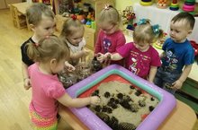 Малыш познает мир и развивает речь через пальчики: ему необходимо все пощупать, потрогать, попробовать. Универсальной вещью для тактильных игр является сенсорная коробочка. Воспитатели группы "Кроха" используют активно в своей практике такие виды игр с песком, природным и сыпучим материалом для развития психоэмоциональной сферы детей.