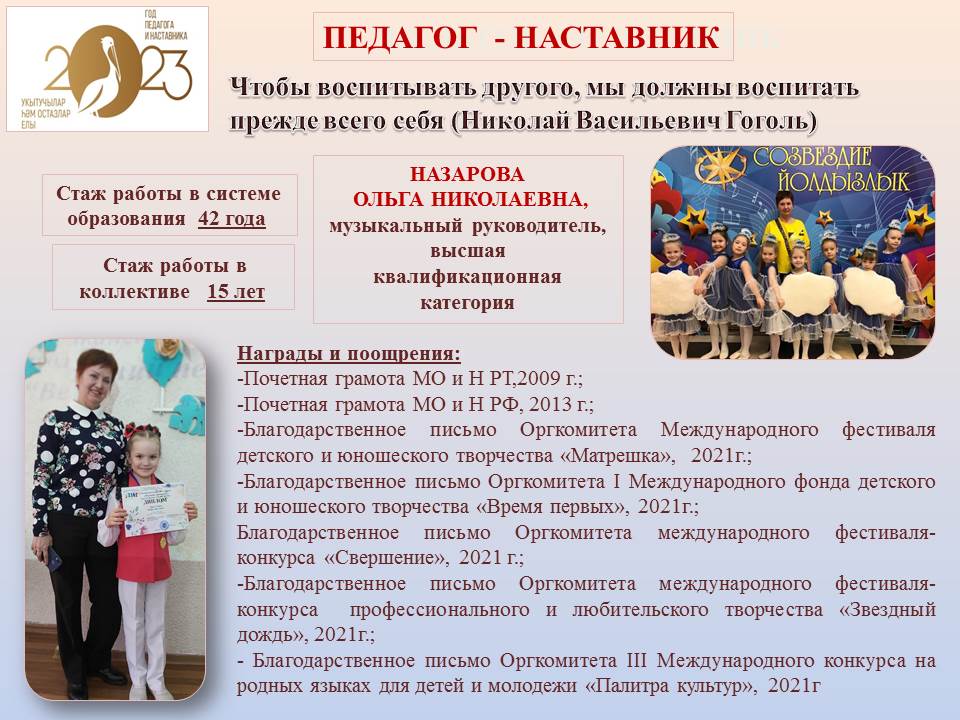 Назарова Ольга Николаевна - музыкальный руководитель высшей квалификационной категории