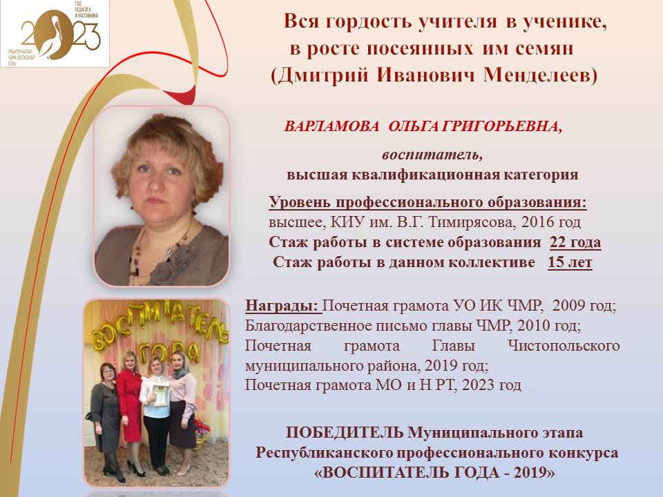 Варламова Ольга Григорьевна - воспитатель высшей калификационной категории